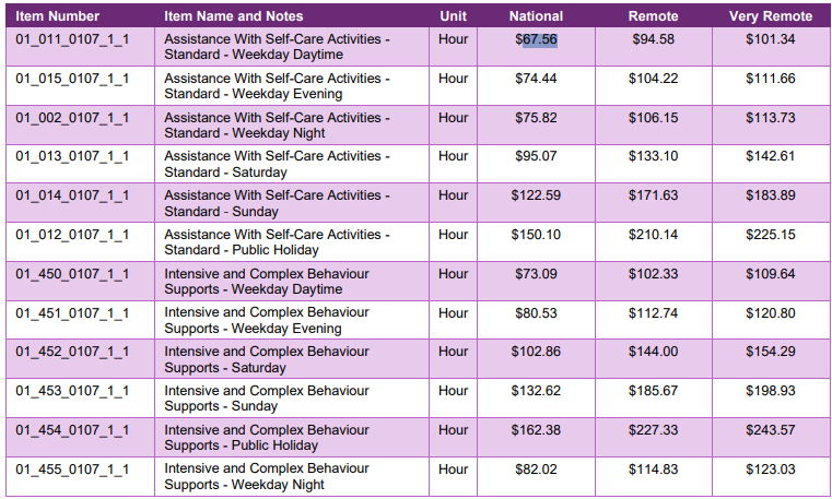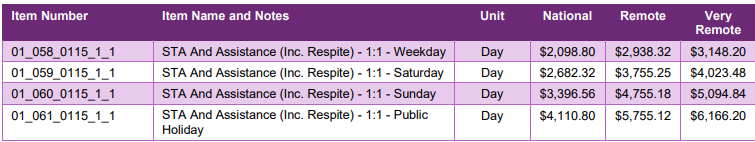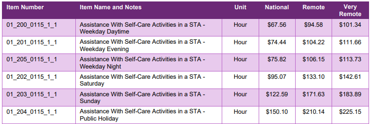 If the NDIS participants need 1:1 assistance with self-care activities aside from STA support, you can claim using the line items below.