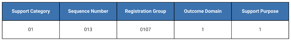 Support Category > Sequence Number > Registration Group > Outcome Domain > Support Purpose